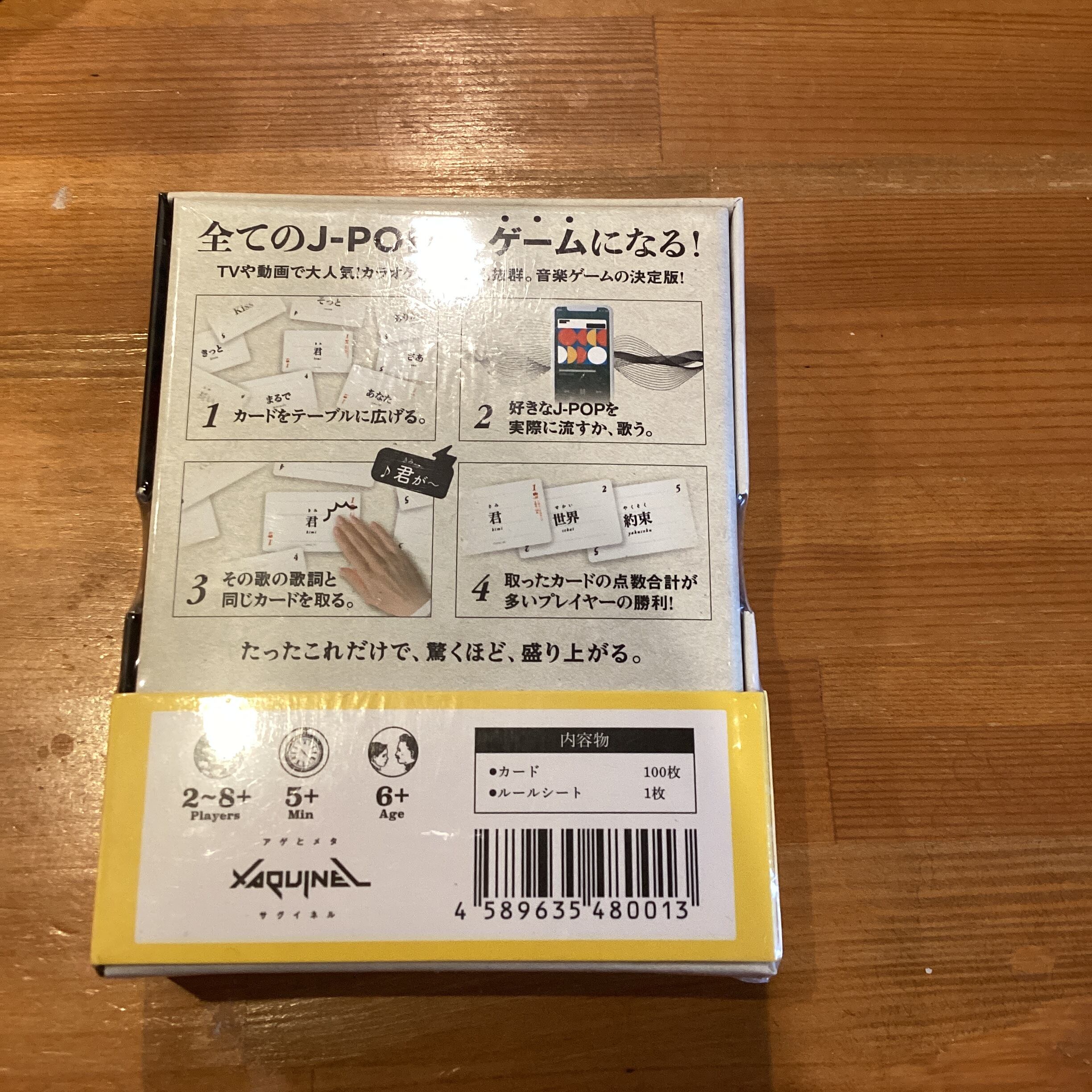 どんなJ−POPもかるたになる!J−POPにありがちなワードが書かれたカードを場に並べたら、歌を流して、場にあるワードが歌われたら、かるたのように素早く取るゲームです!