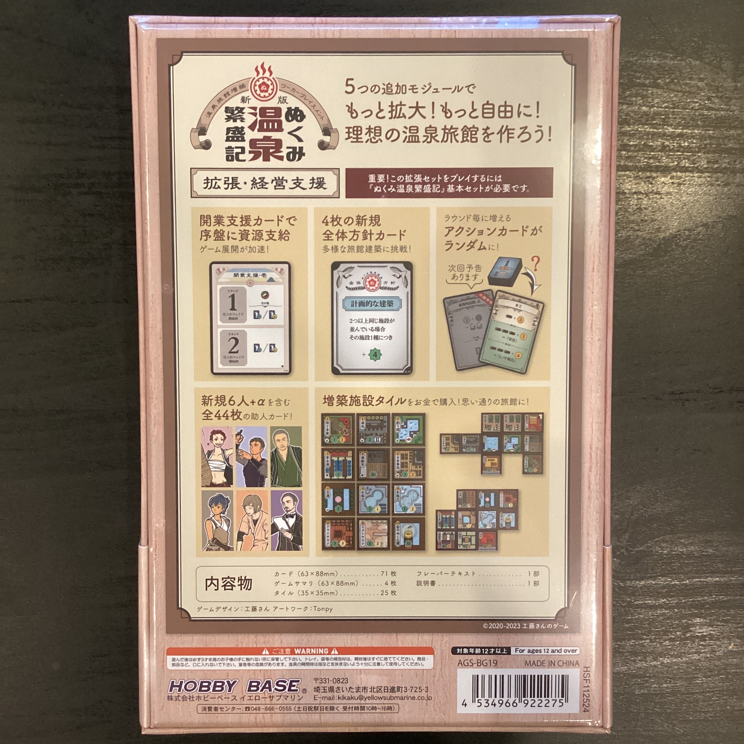 序盤の資源支給や新たな全体方針カード、助人カードや増築タイルにも追加で、さらに広がった温泉経営ゲームを楽しめます!