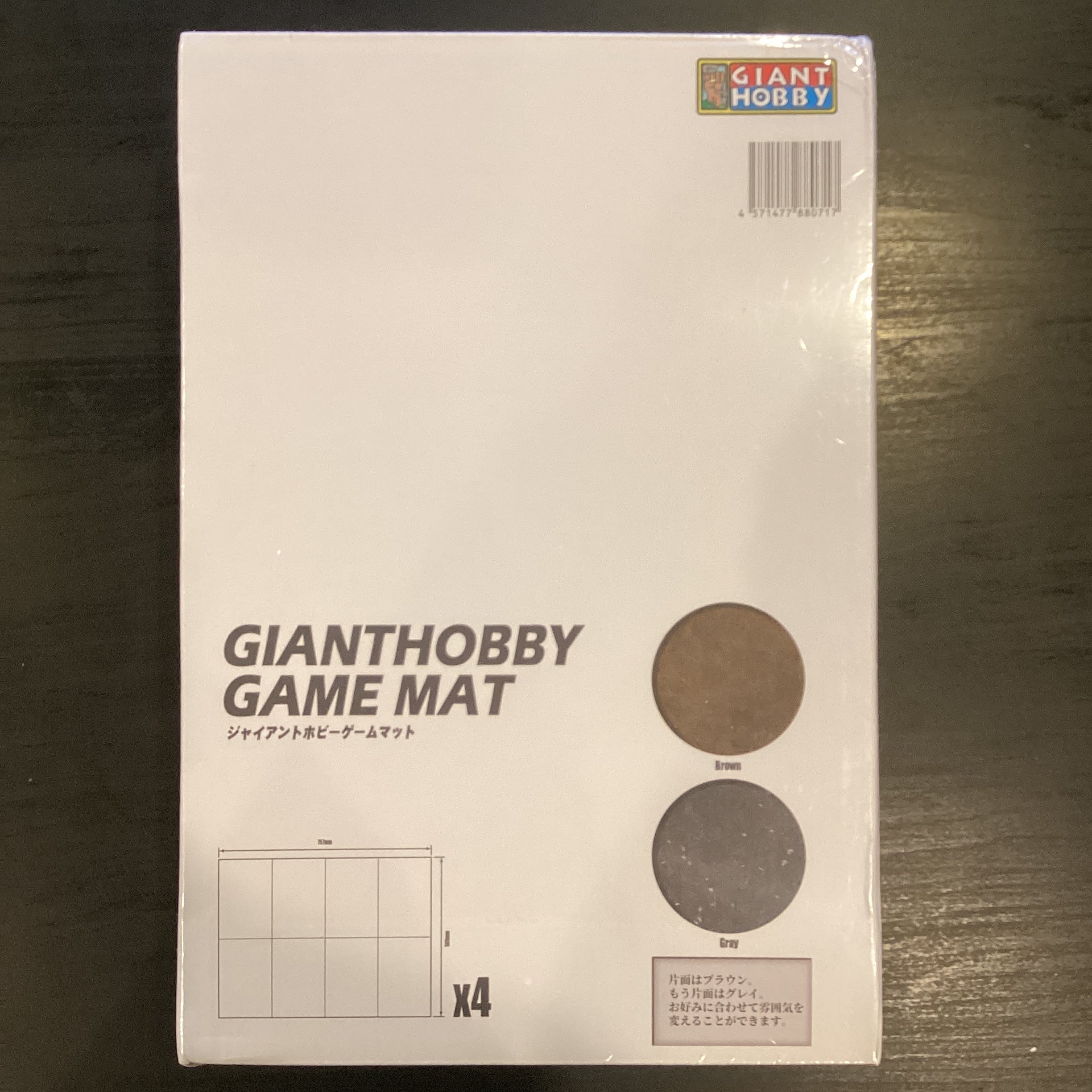 いろいろなミニチュアゲームに使えるプレーンなデザインの、ジャイアントホビーオリジナルゲームマット4枚入り。