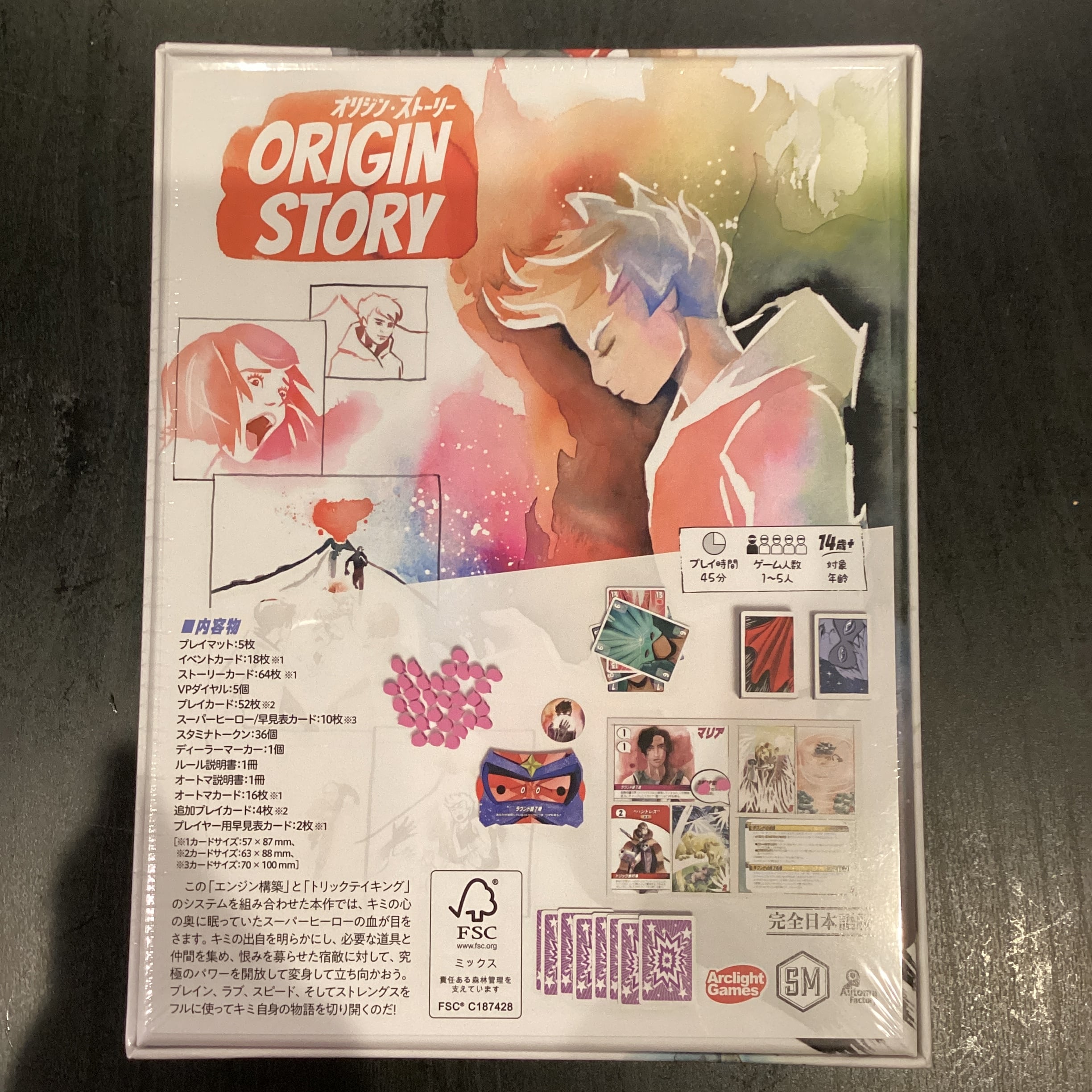 この「エンジン構築」と「トリックテイキング」のシステムを組み合わせた本作では、キミの心の奥に眠っていたスーパーヒーローの血が目をさます。キミの出自を明らかにし、必要な道具と仲間を集め、恨みを募らせた宿敵に対して、究極のパワーを開放して変身して立ち向かおう。ブレイン、ラブ、スピード、そしてストレングスをフルに使ってキミ自身の物語を切り開くのだ!