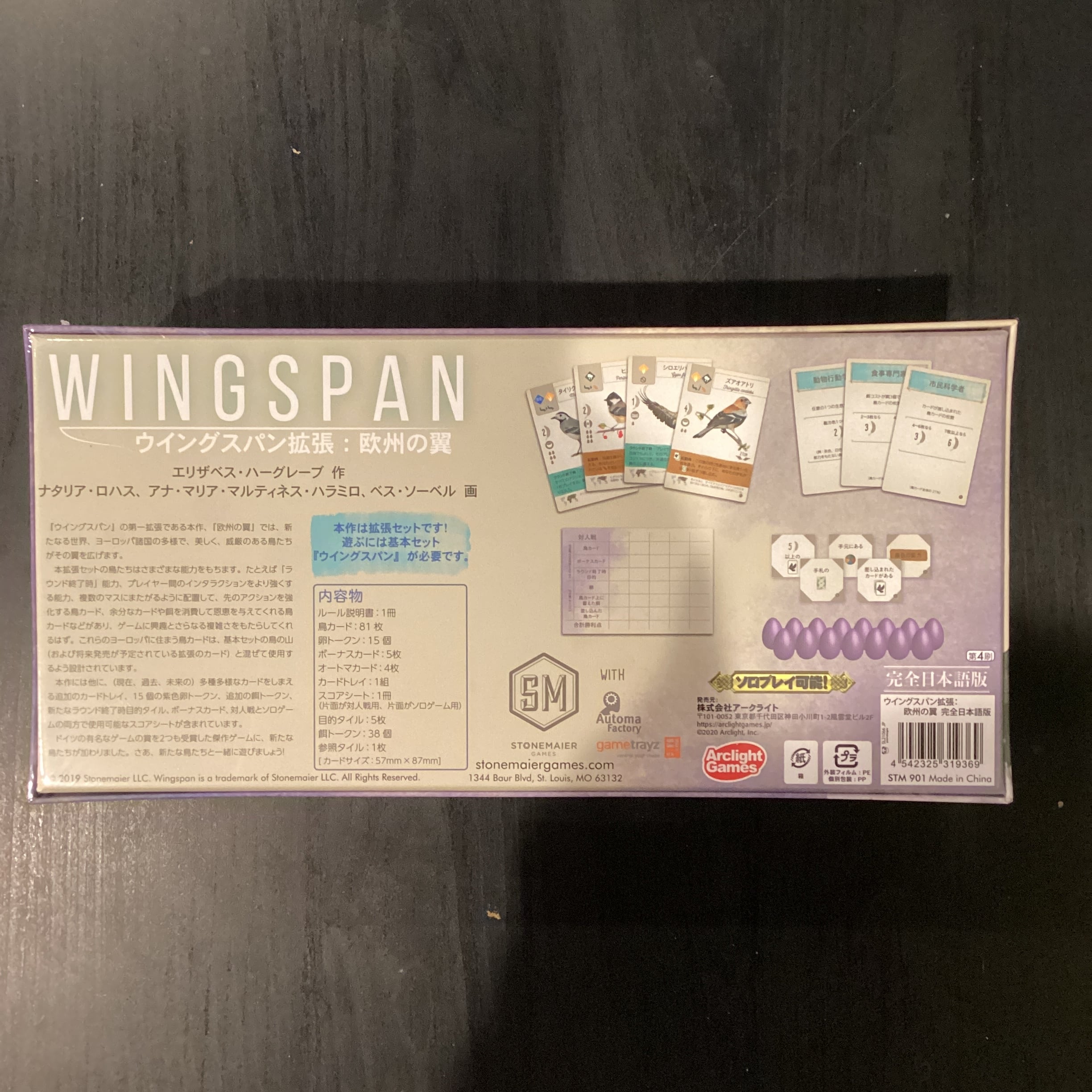 名作エンジンビルドゲーム「ウイングスパン」に欧州の鳥カード81枚を追加できます!ラウンド終了時能力を持った鳥も登場するので、より悩ましいゲームになります!