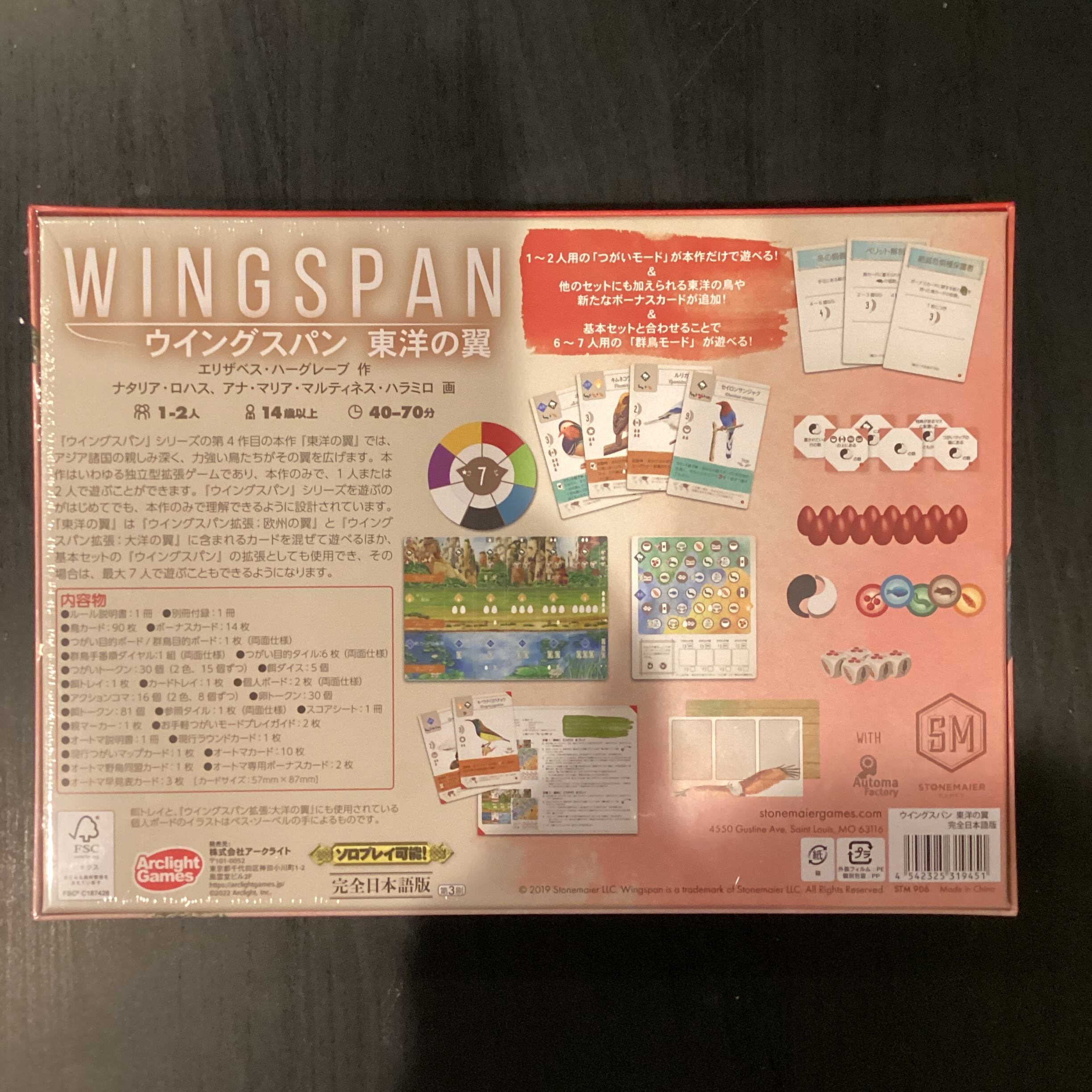 大人気エンジンビルド型ボードゲーム「ウイングスパン」に第4拡張が登場!アジア諸国の鳥たちが収録された今作は独立拡張となっており、本作のみで1-2人で遊ぶことが可能!「ウイングスパン」と合わせれば最大7人までのプレイに対応!