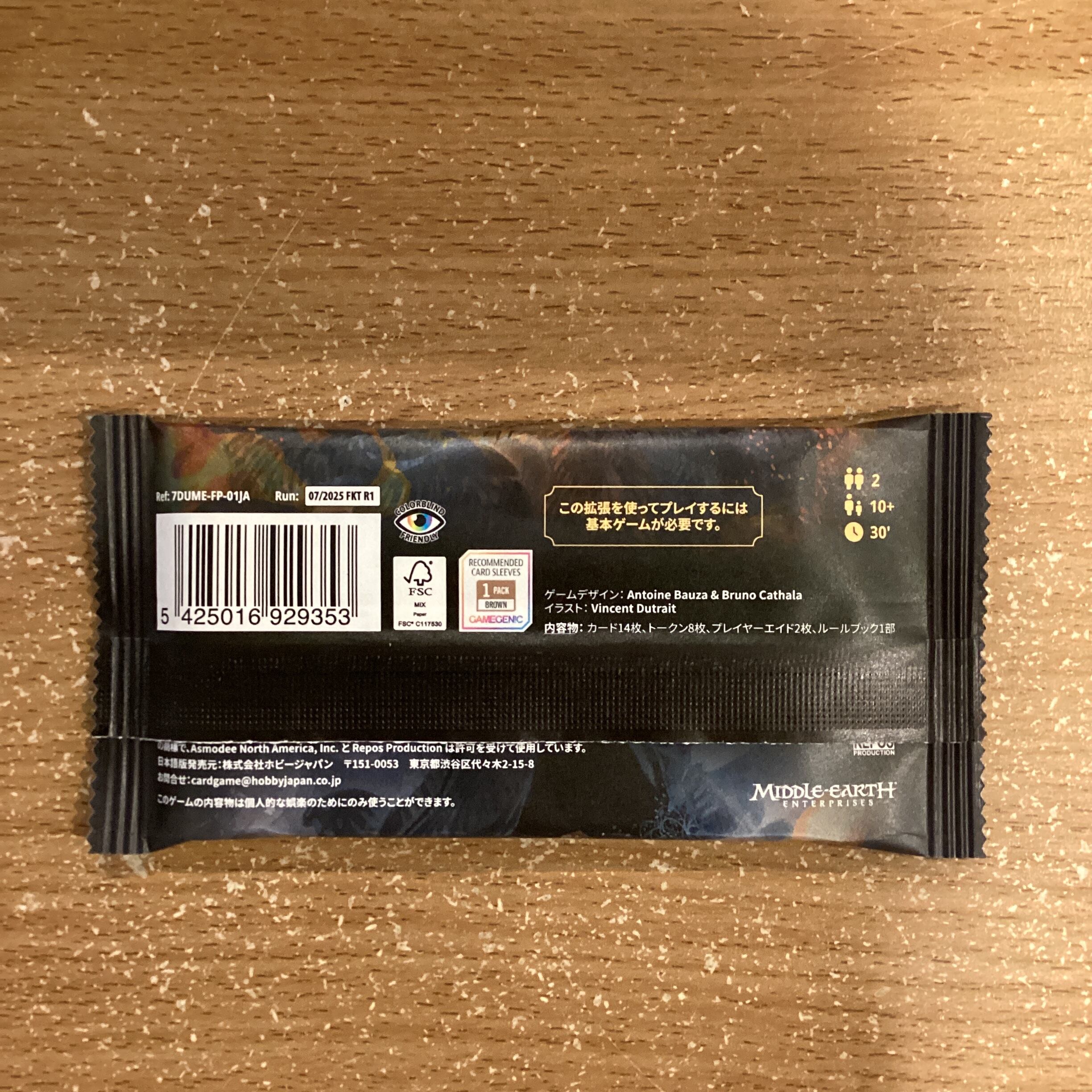 『指輪物語:デュエル 中つ国の決戦 協力者』は『指輪物語:デュエル 中つ国の決戦』に新たな要素である「協力者」を加える拡張セットです。「協力者」は「パワートークン」を支払うことでそれらの能力を使用できるもので、ゲーム開始前に指輪の仲間、サウロンともに各7枚中から3枚をランダムに受け取ります。