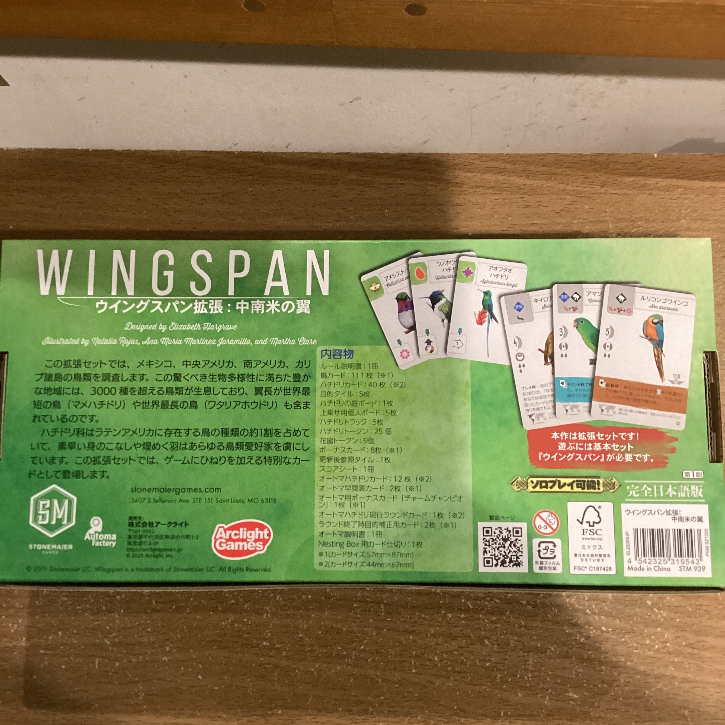 『ウイングスパン』シリーズに新たな拡張セットが登場です。今回はアマゾンやカリブ諸島など中南米に生息する鳥類がテーマとなっています。